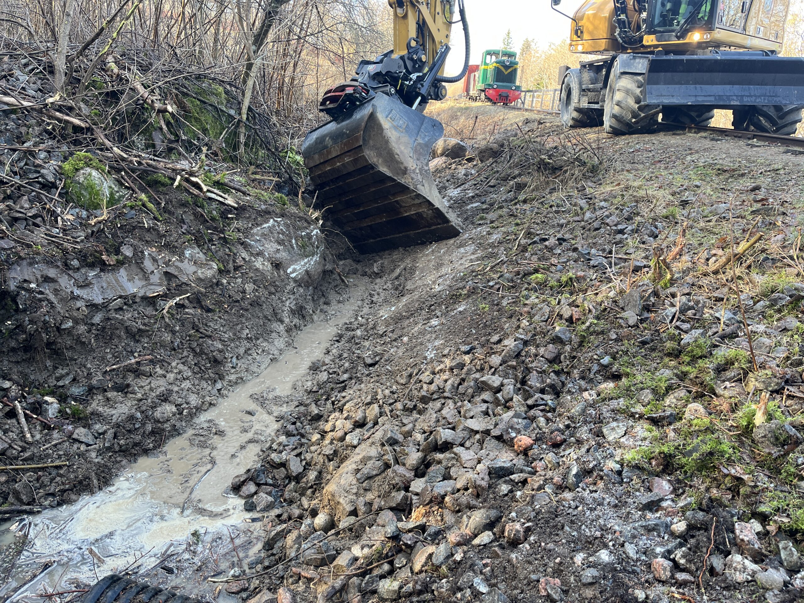 Dikesgrävning för tömning av vattensamling