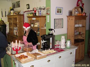 Eftersom det inte gick att ta sig in i väntsalen pga den pågående ommålningen av stationshuset fick Jernvägscafëet också användas som biljettexpedition, det var en strykande åtgång på glögg, kaffe, lussebullar och loktårtan som hade bakats speciellt för denna dag.
