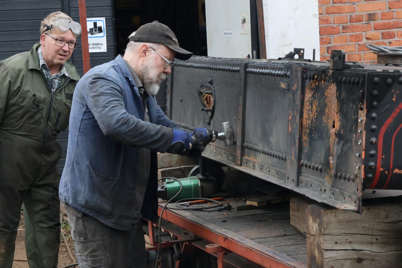 Som tidigare konstaterats är Nelssons sidovattentankar så rostskadade att de måste bytas ut i sin helhet. Det går inte att bygga dem helt som originalen. De är bara 40 cm breda och för att kunna nita dem på ursprungligt sätt, måste en person sitta inne i tanken och hantera de glödande nitarna samt tunga mothåll samtidigt som nitarna slås på plats med mer än öronbedövande ljud med tryckluftshammare utifrån.