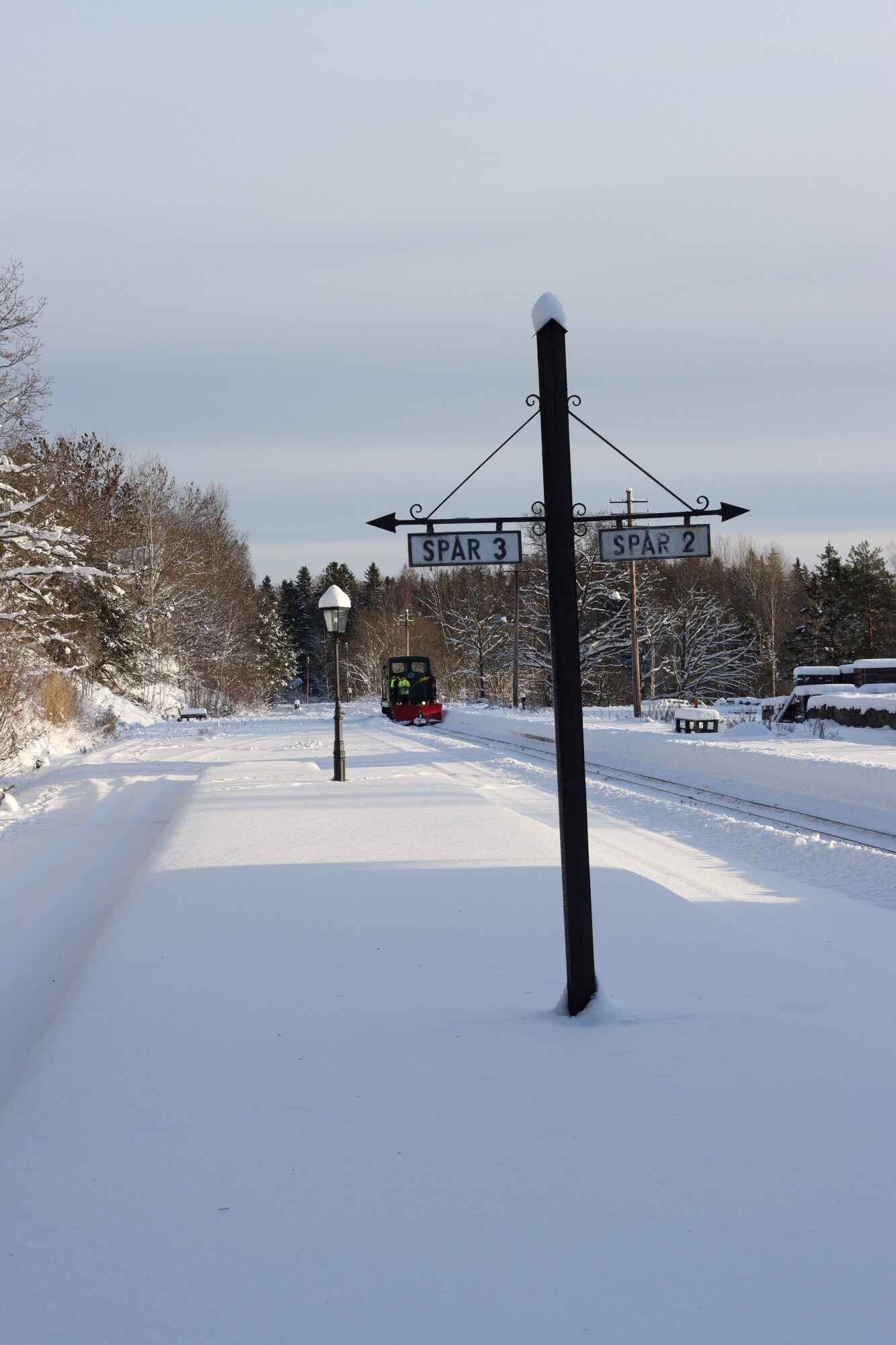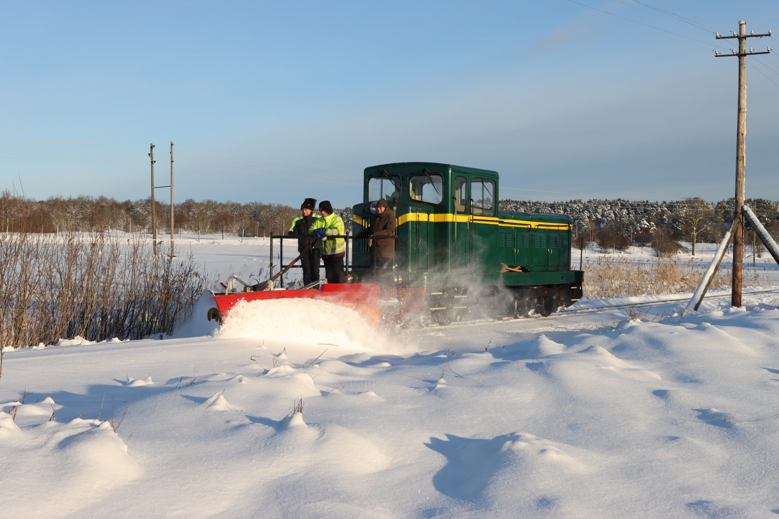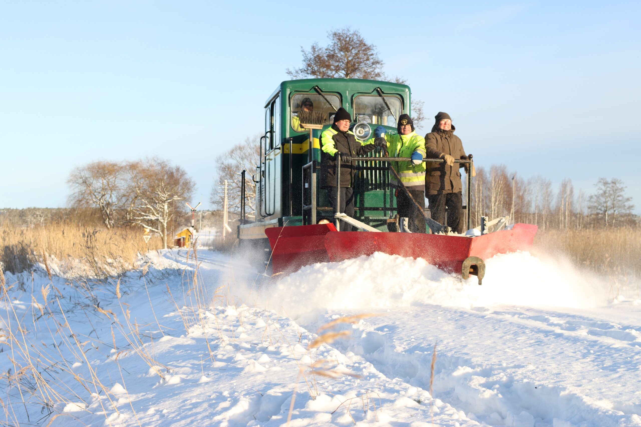 År 2026 började med flera kraftiga snöfall, så även över Mariefred med omnejd. På ÖSlJ har vi haft som tradition att hålla banan trafikabel även under icke trafiksäsong, åtminstone mellan Mariefred och Läggesta. I Läggesta förvarar vi numera merparten av våra vagnar och ett utbyte av fordon mellan vagnhallarna i Läggesta och verkstaden i Mariefred behövs emellanåt. Det kan ju dessutom inte förnekas att snöplogning är rätt roligt….